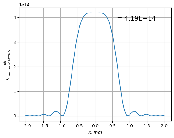 plt.ylabel(r"$I$, $\frac{ph}{sec \cdot mrad^2 10^{-3}BW}$")